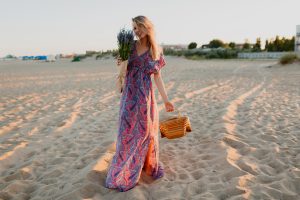 In a tropical paradise, embrace vibrant colors and playful prints. Select maxi dresses in lightweight fabrics with floral patterns or exotic motifs. Pair them with colorful sandals, a woven straw bag, and oversized sunglasses for a captivating beach-ready look. Let your hair flow naturally and exude the laid-back charm of a true vacationer.